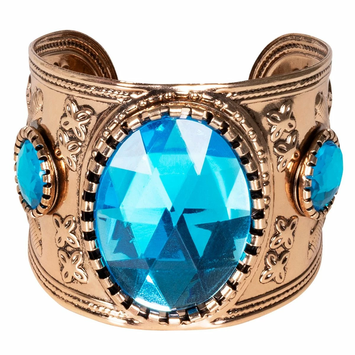 Schitterende gouden armband met grote blauwe stenen. Geschikt voor bijvoorbeeld een epyptische of zigeuner outfit.