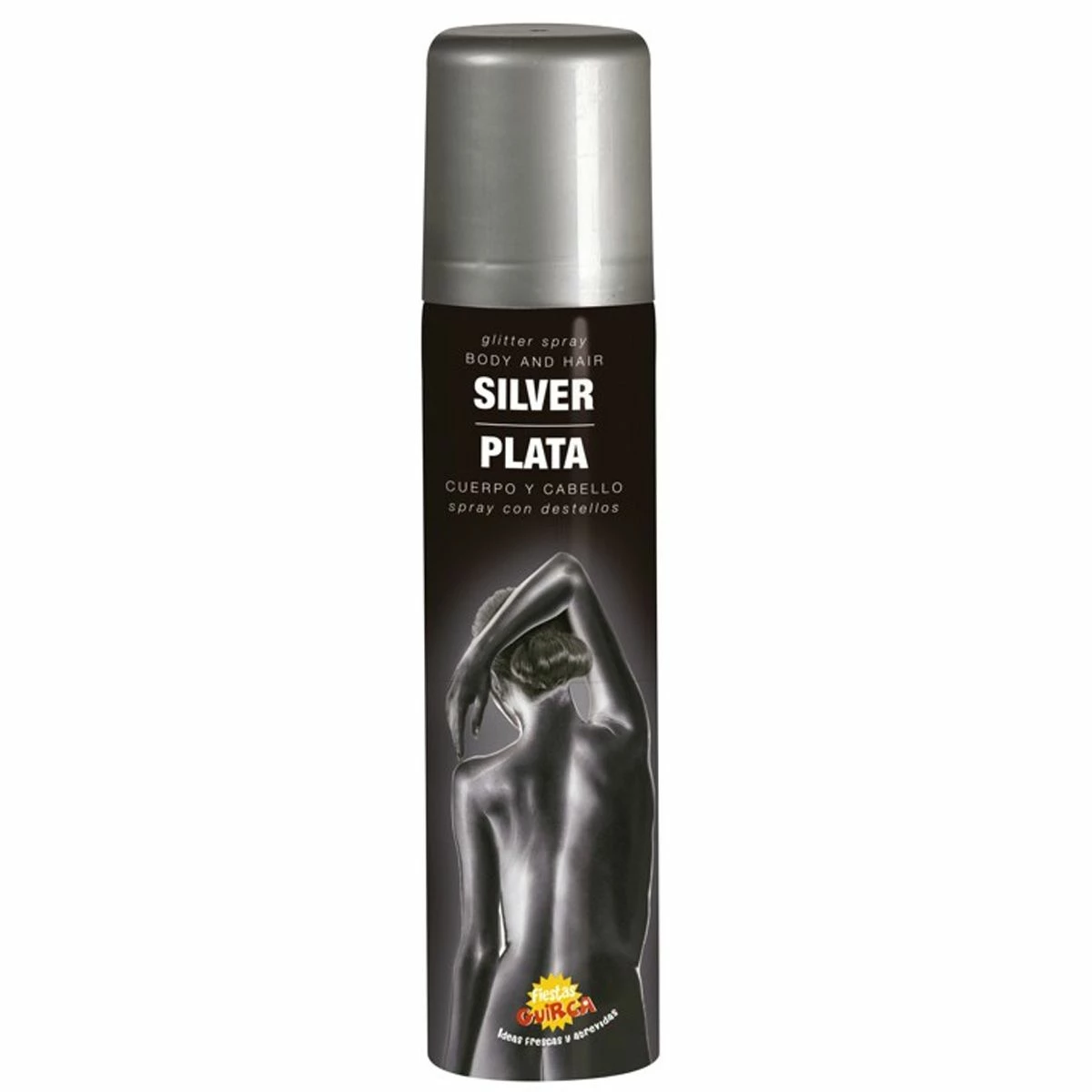 Prachtige zilveren body spray. Deze spray kan gebruikt worden om je lichaam zilver te maken. Super geschikt voor bijvoorbeeld een silver surfer outfit! De spray is met zeep weer van het lichaam te spoelen.