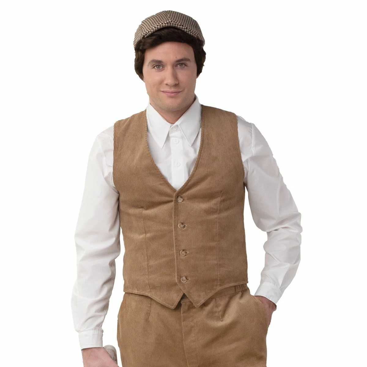 Mooi bruin corduroy ribstof vest. Zowel voor- als achterzijde in corduroy, met verstelbaar riempje.