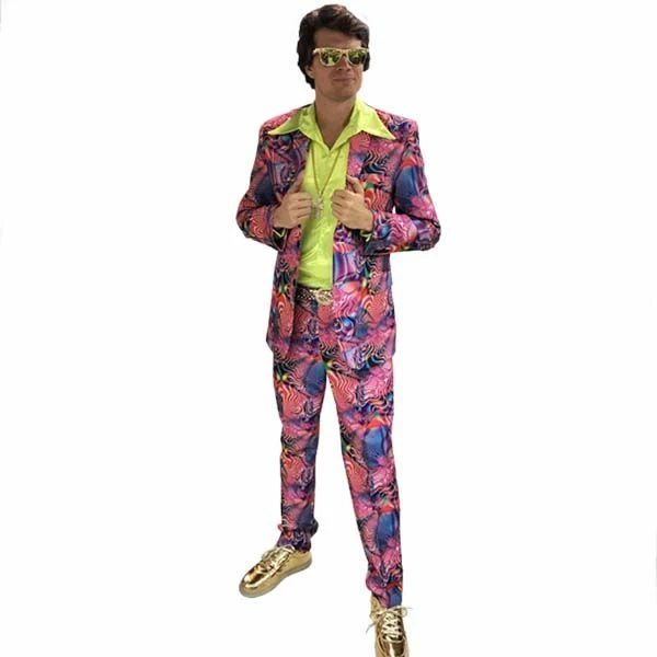 Foute party kostuum voor heren bestaande uit een gevoerd colbert, broek en stropdas.