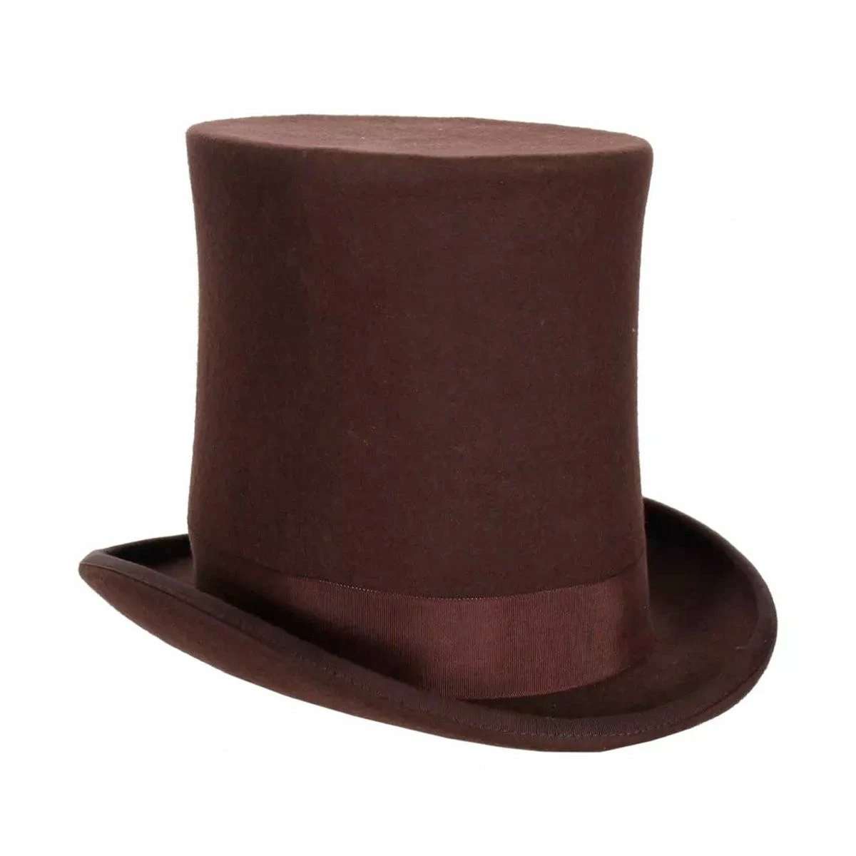 Deze cylinder hoed van 100% wolvilt is gevoerd met een 100% polyester witte satijn en is voorzien van een voeringband, de hoogte van deze hoed is 21 cm.