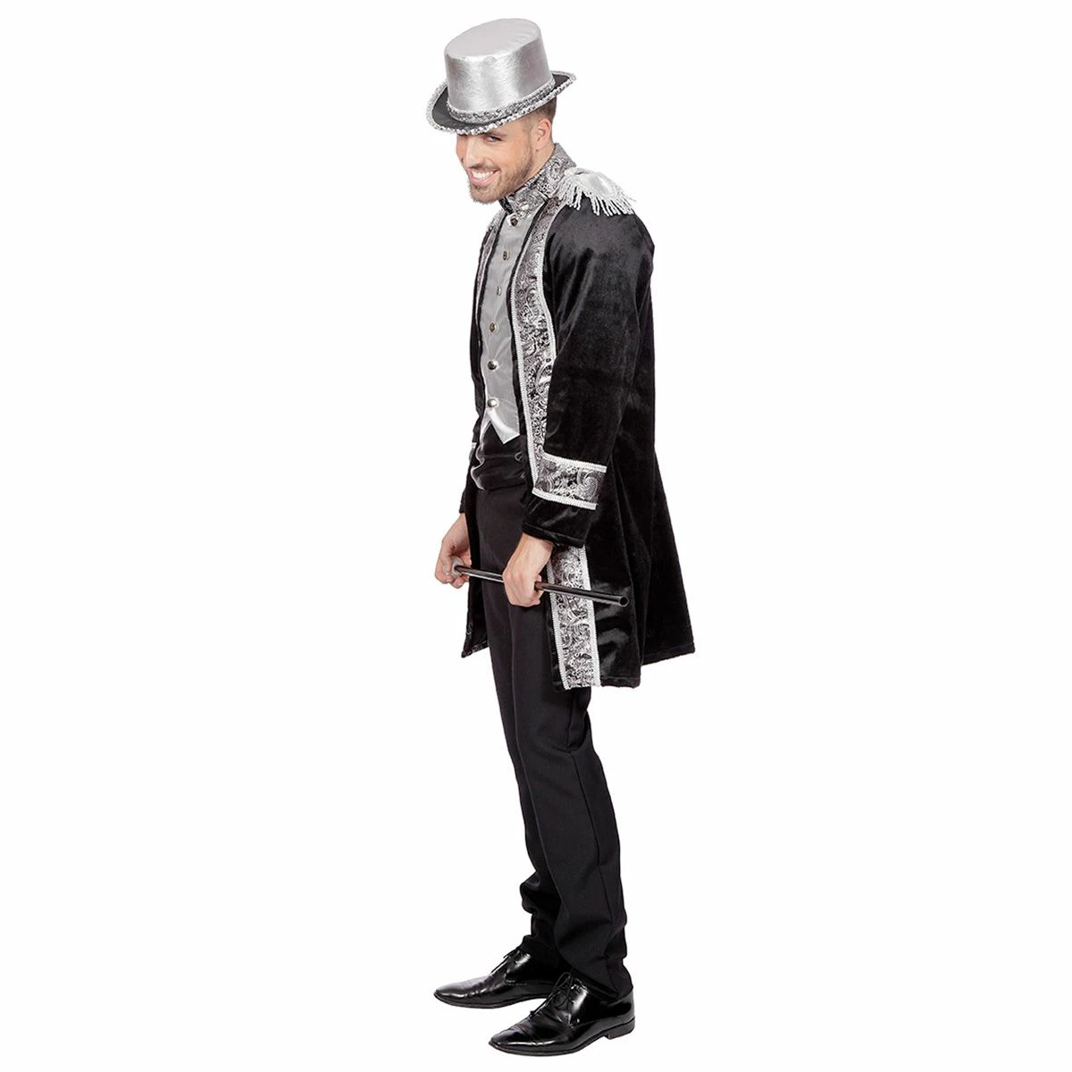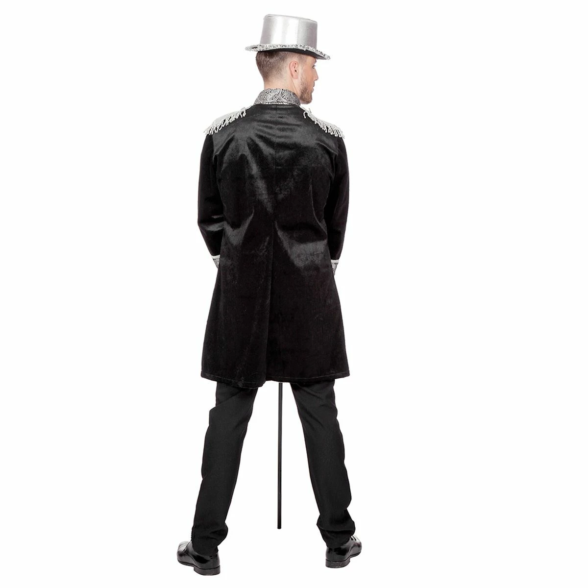 Prachtige, zwart/zilveren fluwelen herenjas met aan de voorzijde een zilver gilet pand. De jas is afgewerkt met zilver brokaat band op de voorzijde en de mouwen. Inclusief zilveren epauletten. Een bijpassende damesversie is ook verkrijgbaar.