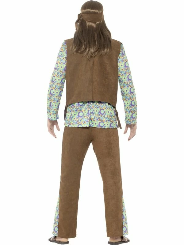 Gekleurd hippie kostuum voor heren. Dit hippie shirt is perfect voor een jaren 60 feest of een foute party. Het kostuum bestaat uit een shirt met vestje, broek, medaille en hoofdband.