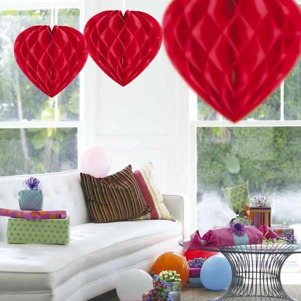 Honeycomb hart decoratie rood, ongeveer 30cm groot