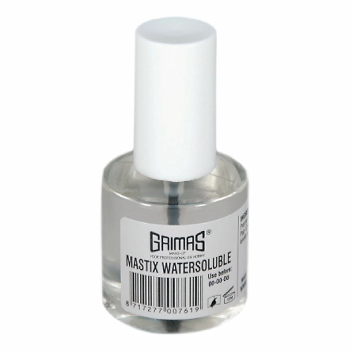 Grimas Wateroplosbare Mastix is een met water te verwijderen huidlijm en wordt gebruikt voor het lijmen van Wolcrêpe baarden en snorren bij kinderen waarbij het beslist niet in de buurt van of boven de ogen mag worden gebruikt.