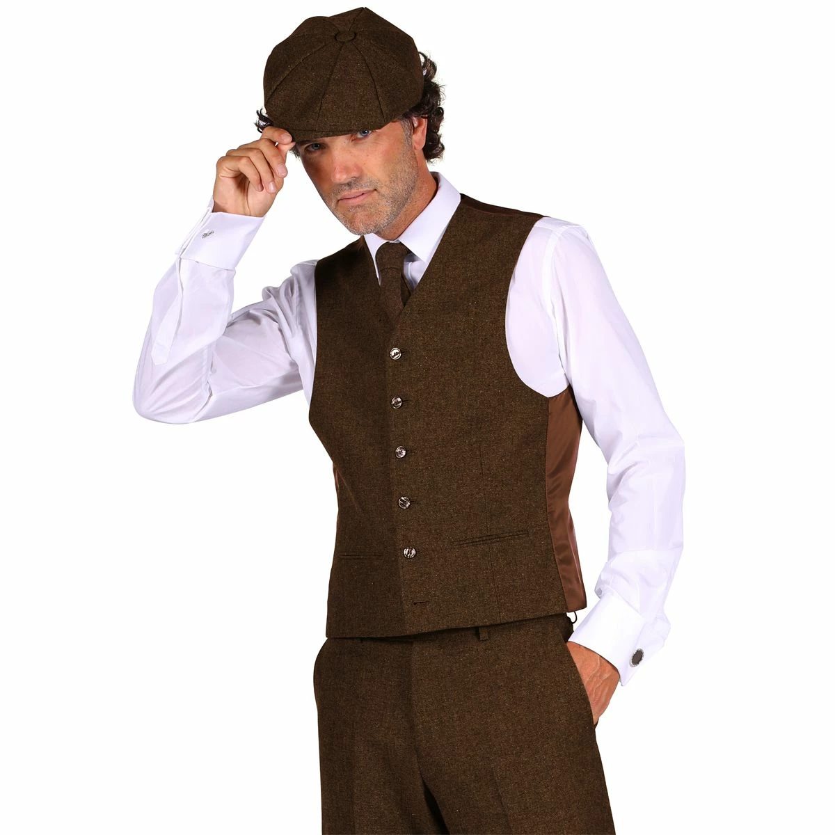 Bruine gilet van gemeleerde stof voor jaren 20, Peaky Blinders of Dickens outfit.