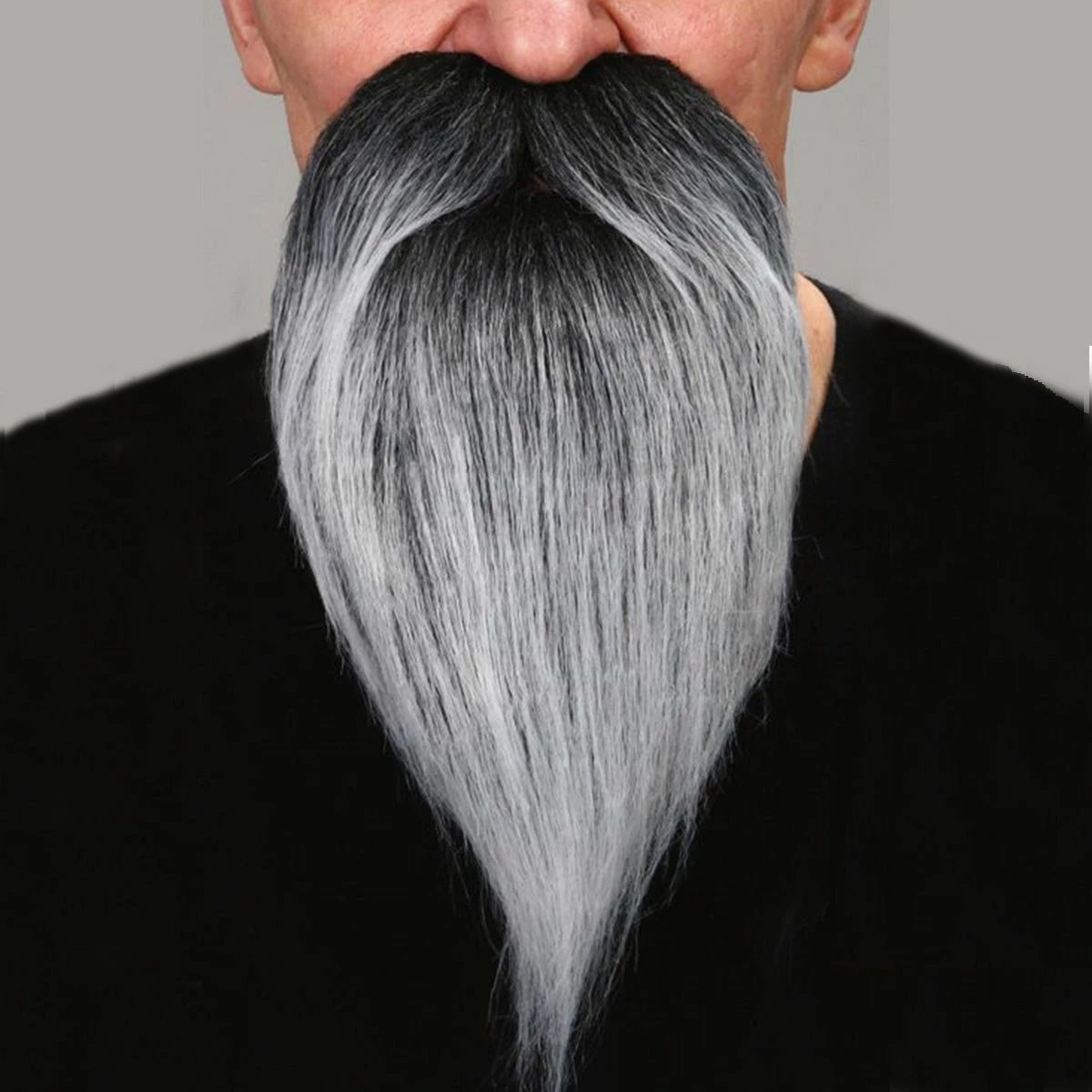 Mooie lange grijze baard. Deze baard is super geschikt voor heel veel outfits. Plak hem op je gezicht en zie er meteen ouder uit!