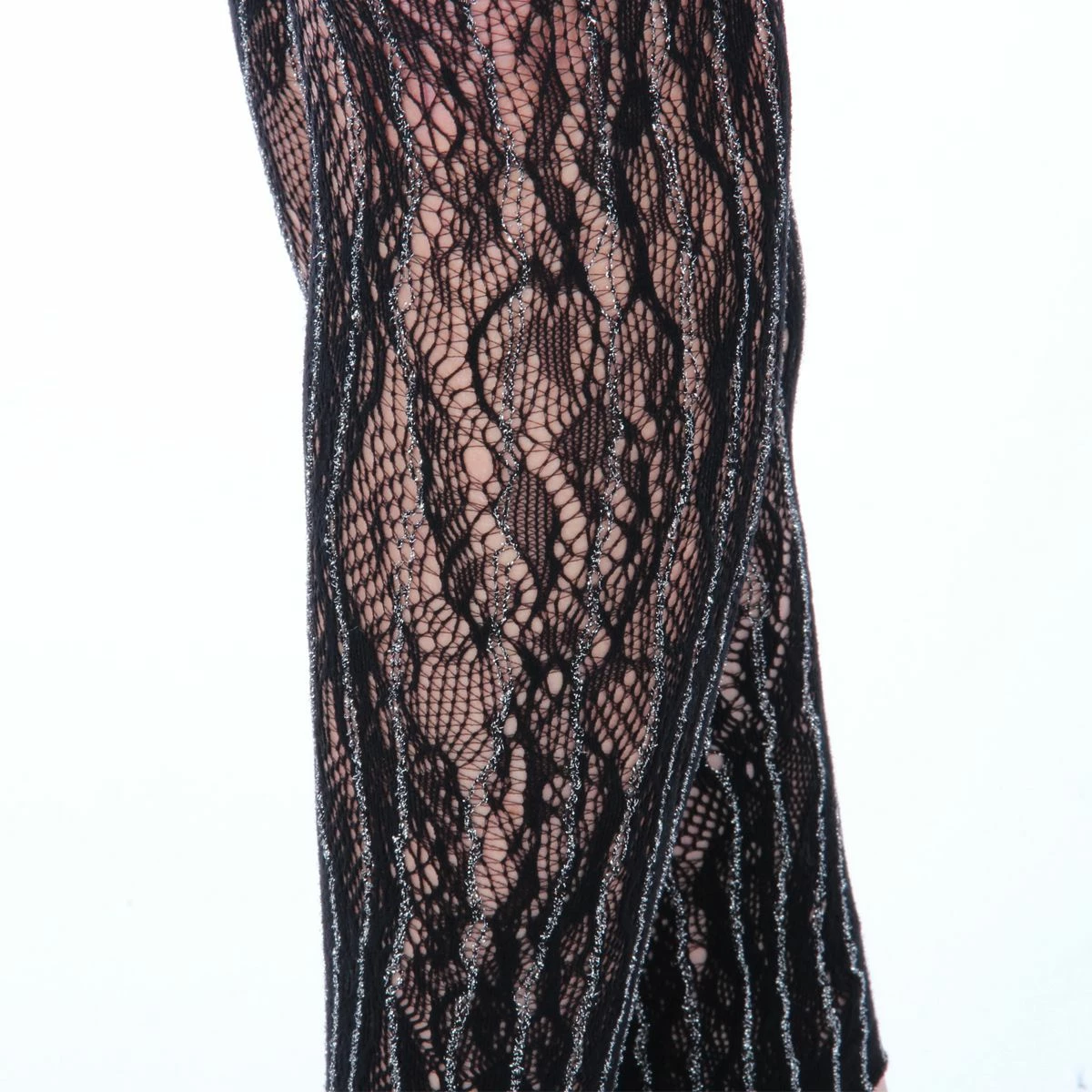 Luxe kanten legging met zilveren glitters. De legging is in one size maat, dus geschikt voor XS t/m XXL.