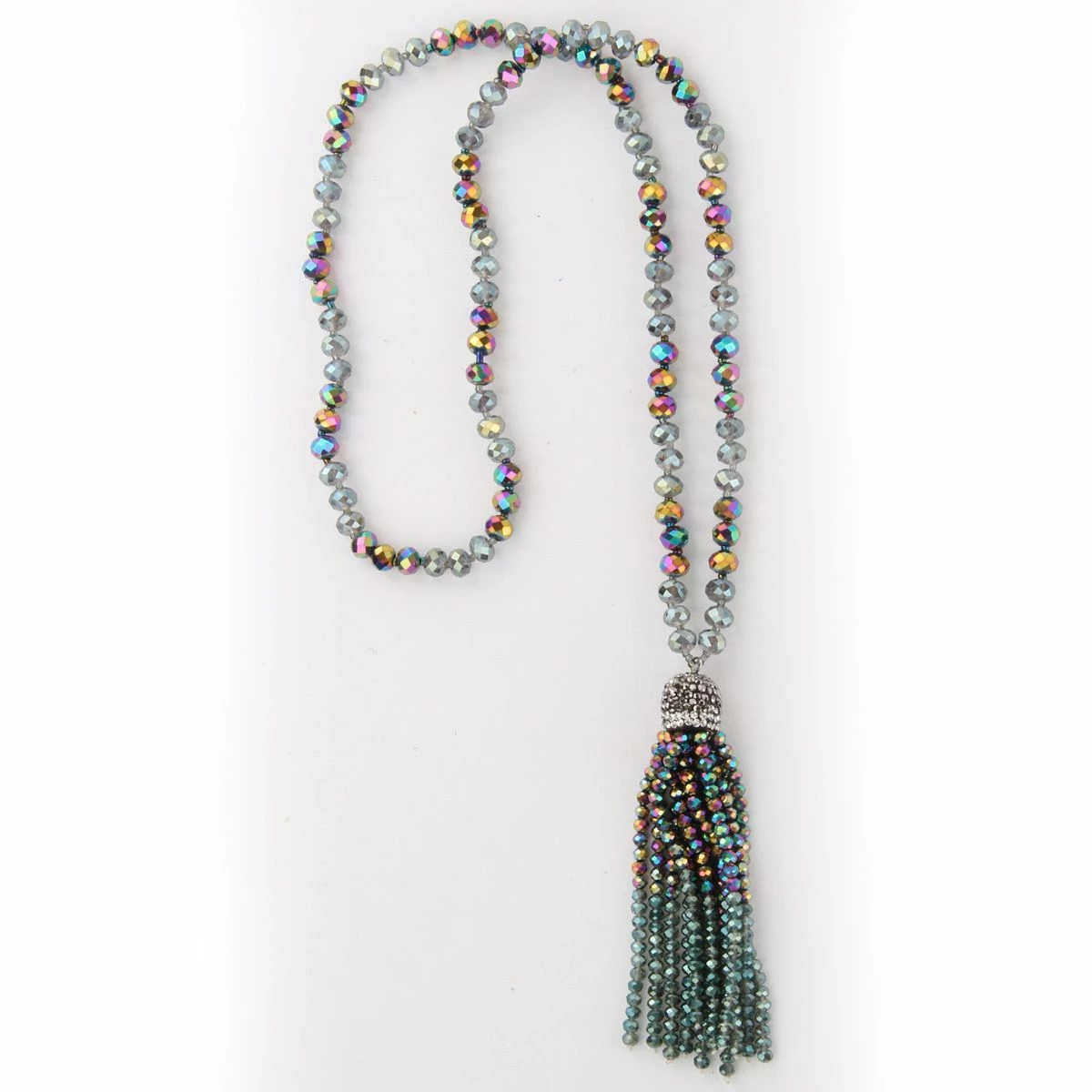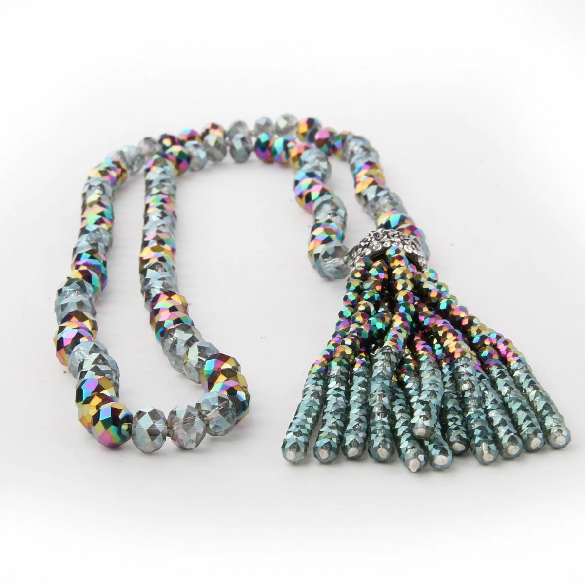 Deze luxe zilveren ketting is de finishing touch voor jouw outfit. De ketting heeft een sprankeling van zilver met multicolor. Bijpassende oorbellen zijn ook verkrijgbaar.