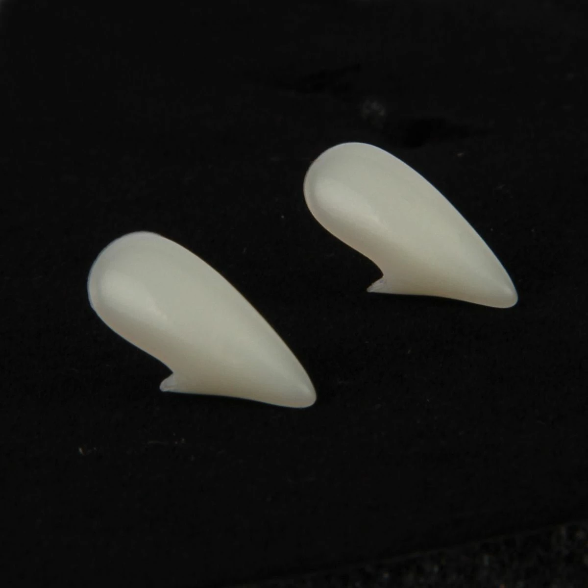 Set van 2 luxe vampier hoektanden, lengte 17 mm. De ivoorkleurige tanden hebben een zeer realistische look. Je bevestigt ze gemakkelijk op je eigen tanden met thermische tandenlijm, deze is verkrijgbaar in onze webshop. Verkrijgbaar in 2 lengtes, wij raden 17 mm aan voor voruwen en 19 mm voor mannen. De tanden worden geleverd in een luxe bewaardoosje.
