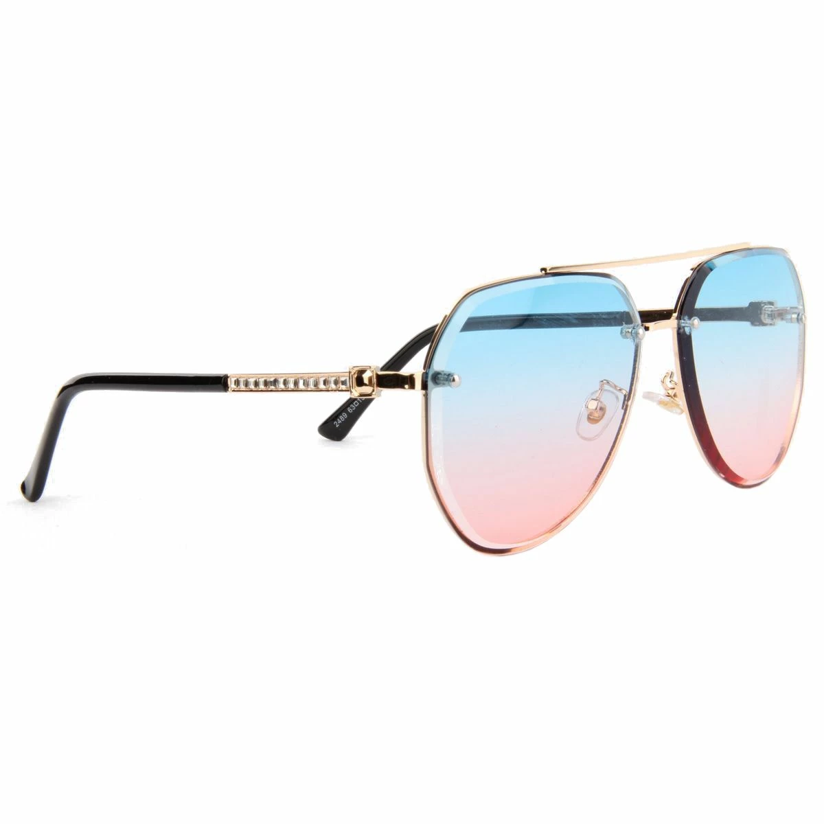 Luxe, stoer model, heren zonnebril met blauw-roze glazen. De poten zijn afgewerkt met steentjes. Met deze bril maak je je outfit helemaal af.