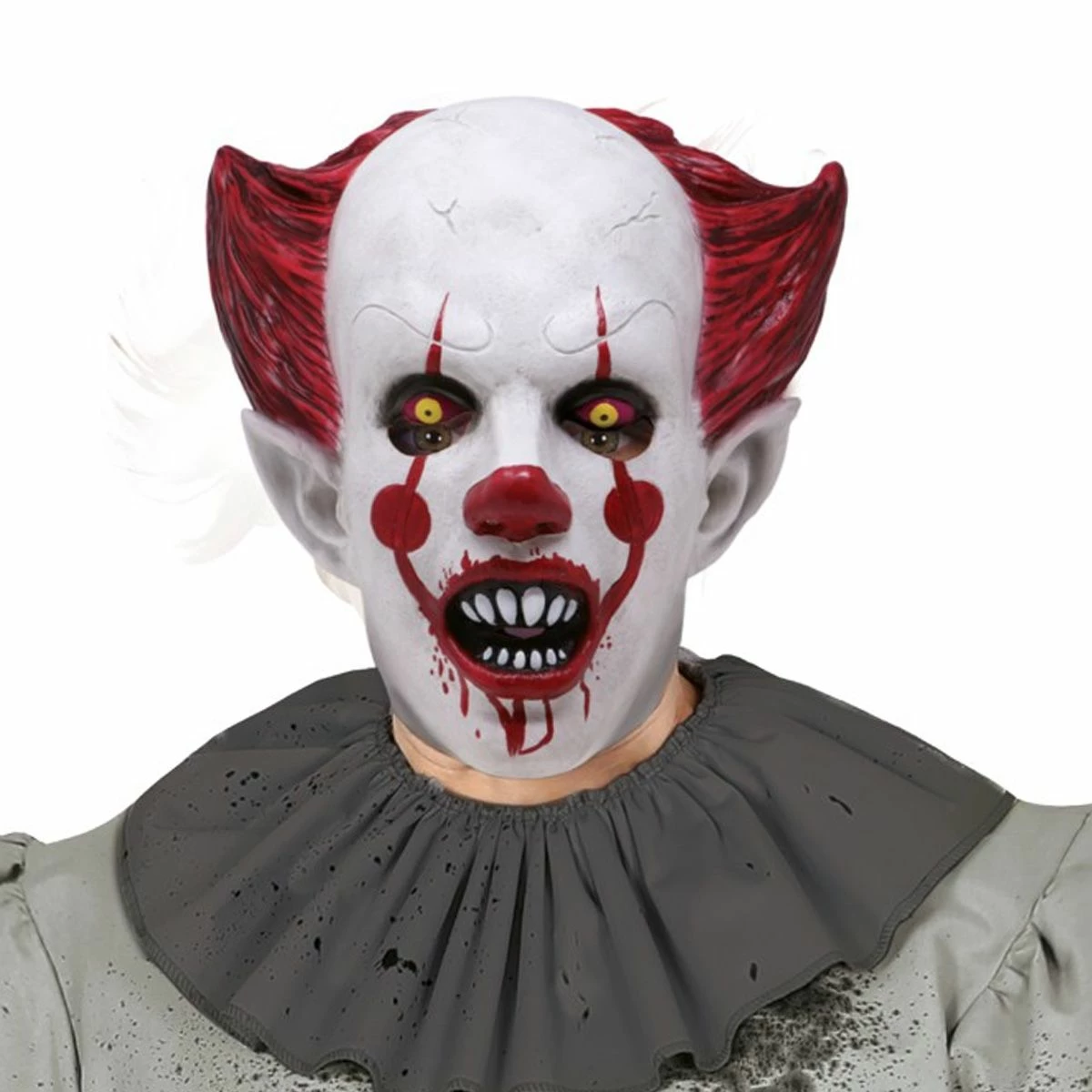 Killer clown masker van latex voor Halloween met bebloede mond. Dit masker is perfect in combinatie met een clown kostuum. Je hoeft niet te schminken en bent snel klaar! Dat wordt een scary Halloween!