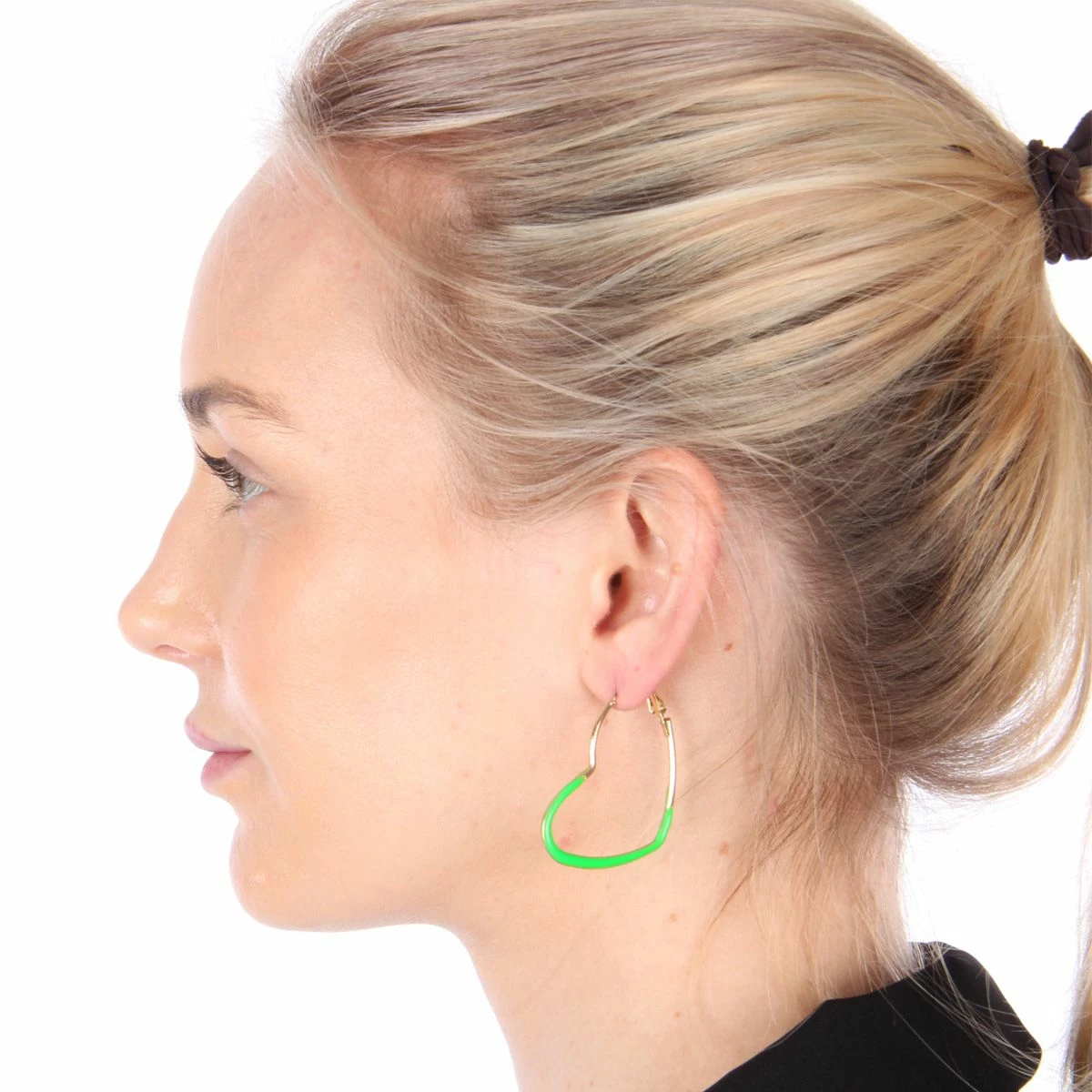 Deze Neon oorbellen in hart vorm maken je disco/hippie/flower power outfit helemaal compleet! Verkrijgbaar in 4 verschillende kleuren.