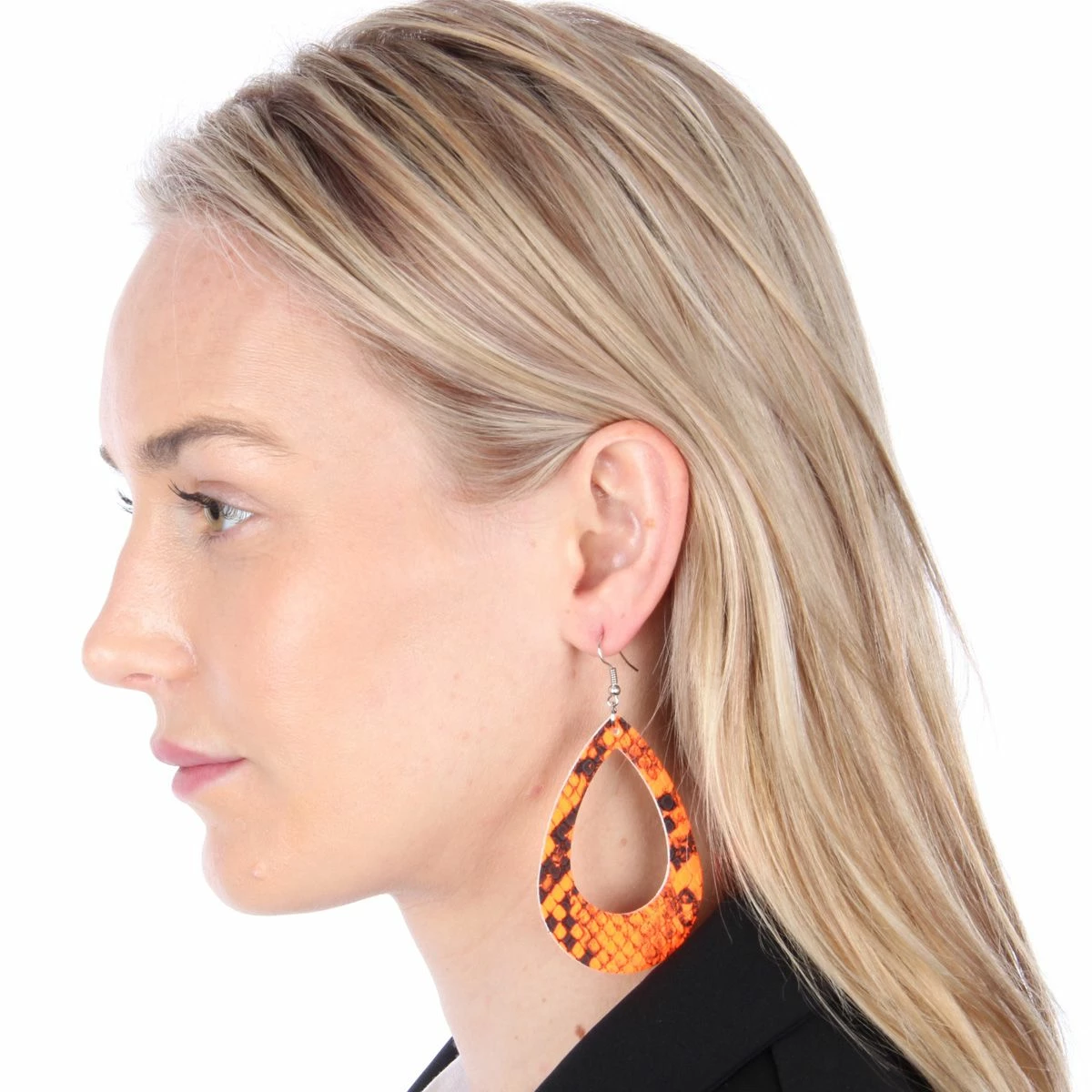 Deze Neon oranje oorbellen met print maken je disco/hippie/flower power outfit helemaal compleet! Ze zijn van zeer licht materiaal, dus met een hoog draagcomfort. Verkrijgbaar in 4 verschillende kleuren.Â