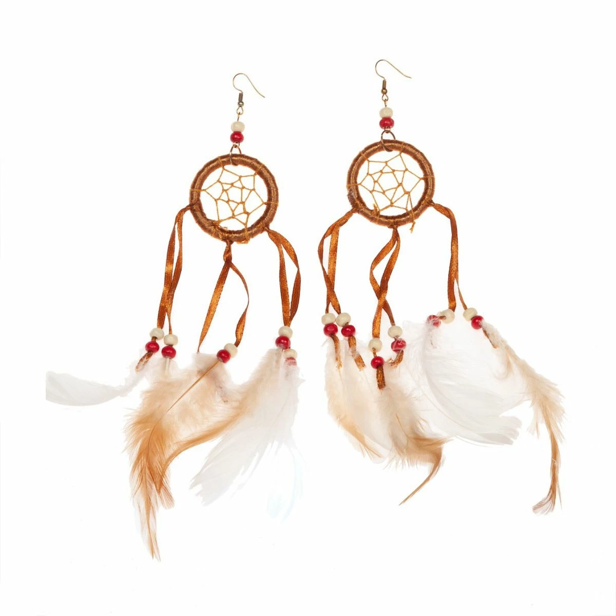 Leuke, grote oorbellen met dromenvanger en veertjes, een mooie accessoire voor bijvoorbeeld een indiaan outfit.
