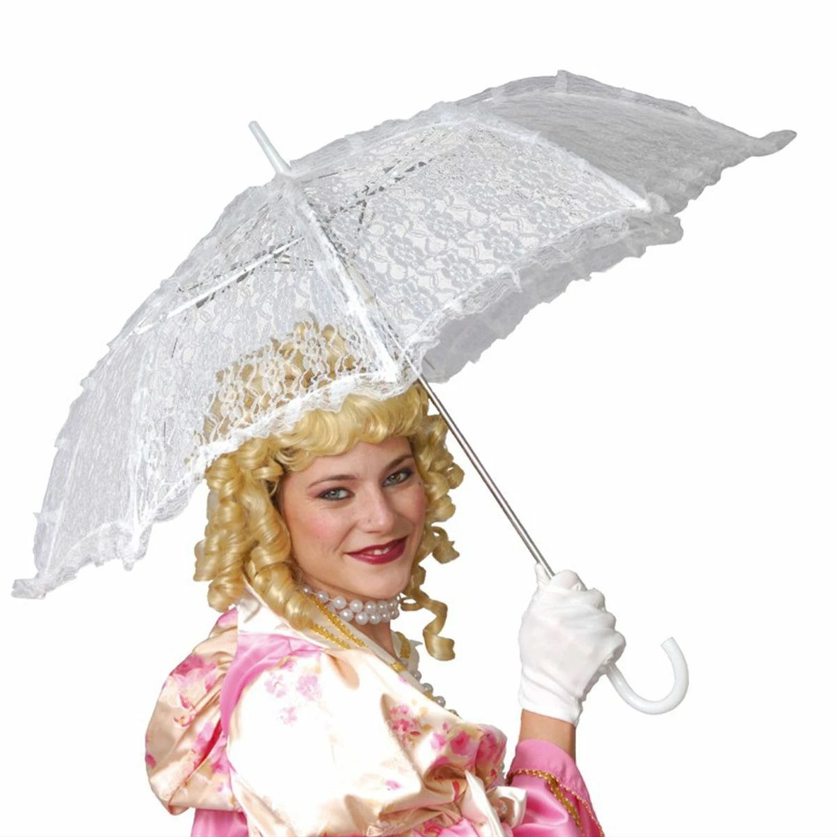 Maak je markies outfit helemaal compleet met deze kanten witte paraplu.