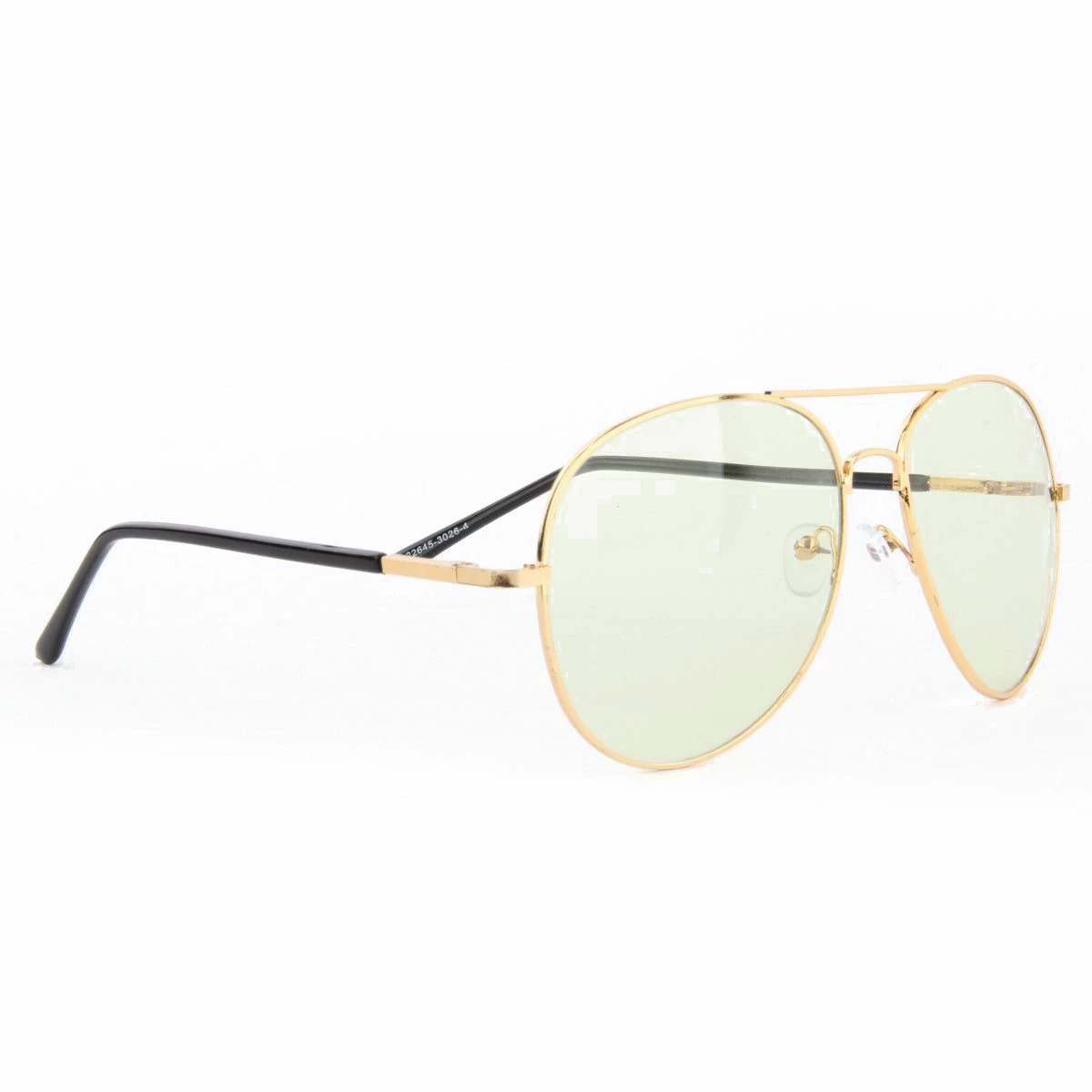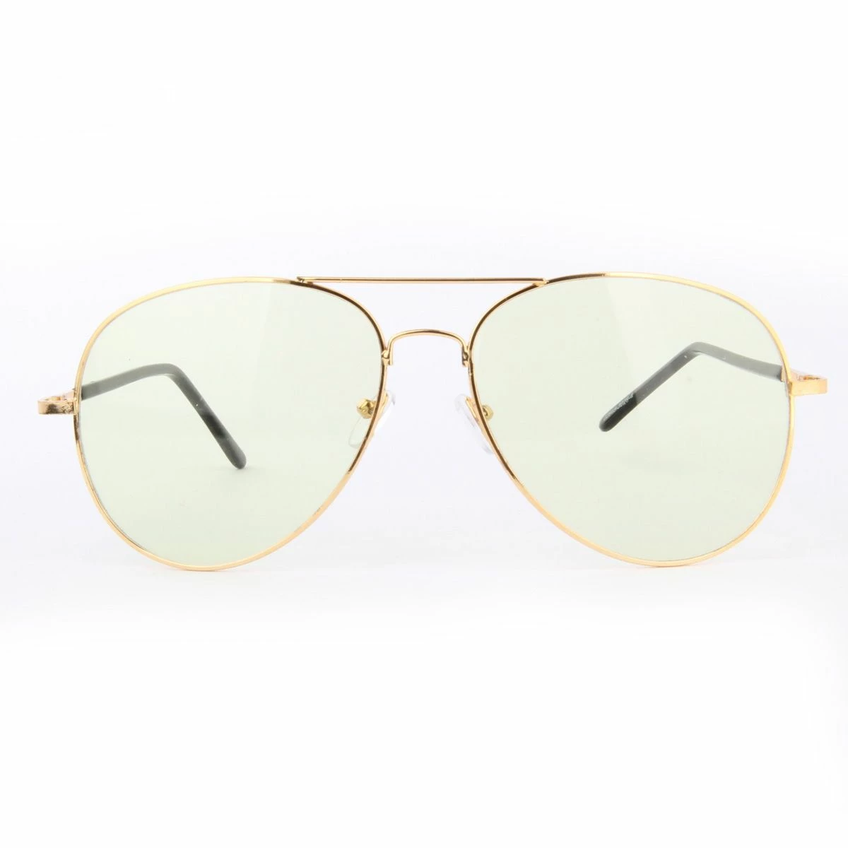 Pilotenbril met groene glazen. Het montuur is goudkleurig. Met deze bril maak je je outfit helemaal af.