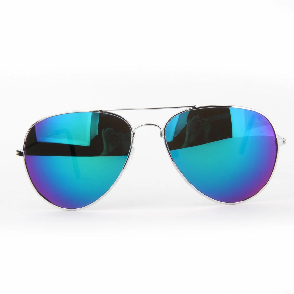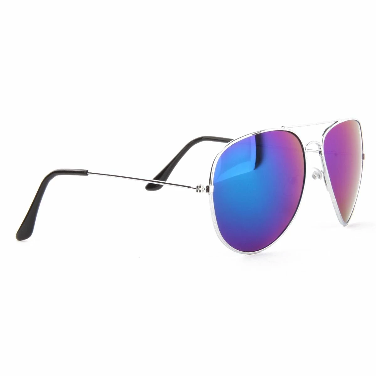 Piloten zonnebril met paars-blauwe spiegelglazen. Het montuur is goudkleurig. Met deze bril maak je je outfit helemaal af.