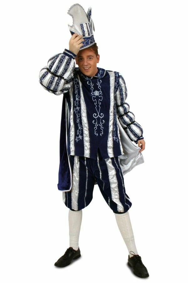Dit prachtige prins carnaval kostuum bestaat uit een broek en vest met cape. Ook verkrijgbaar in het rood.