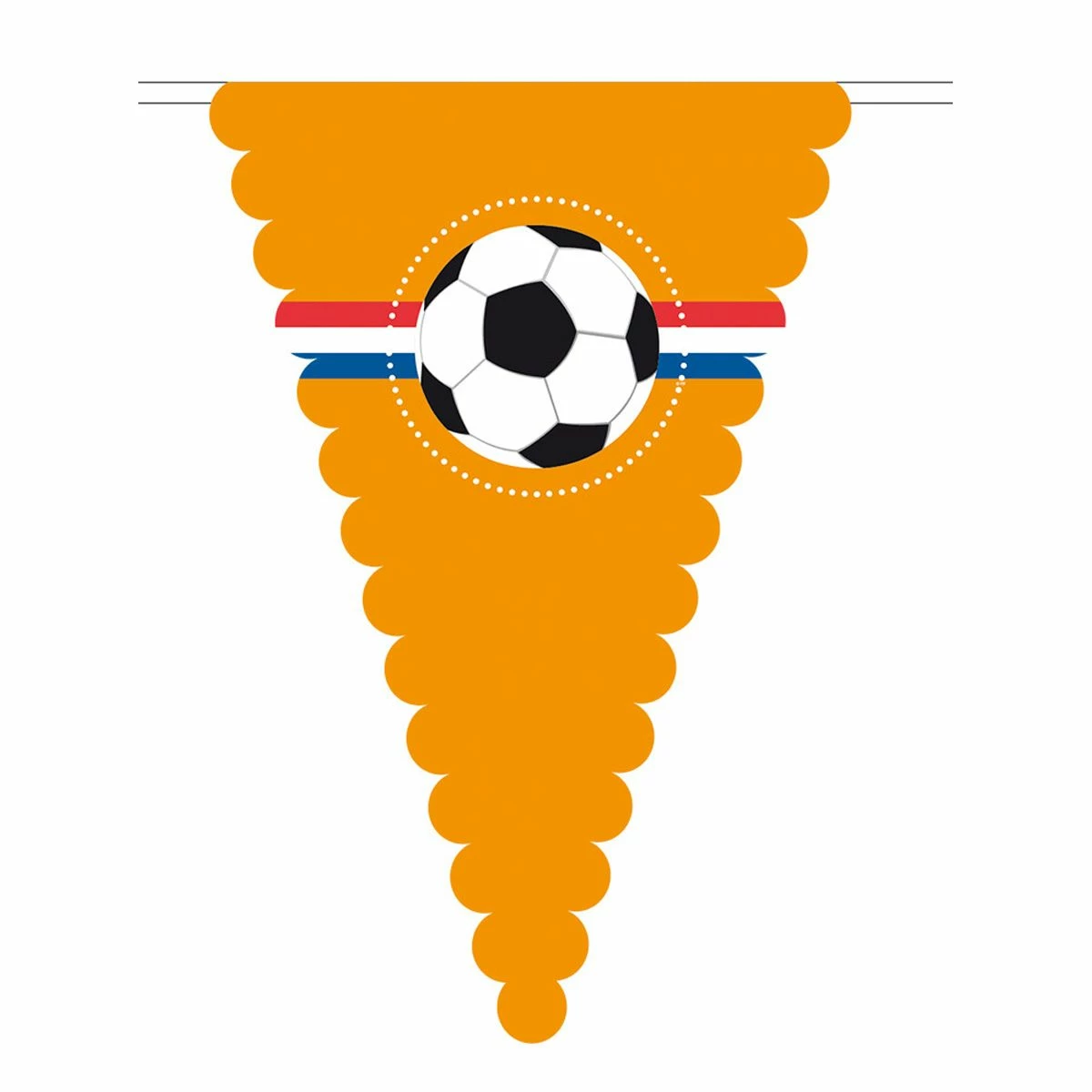 Oranje vlaggenlijn van 8 meter met grote puntvlaggen (45 cm hoog).Â