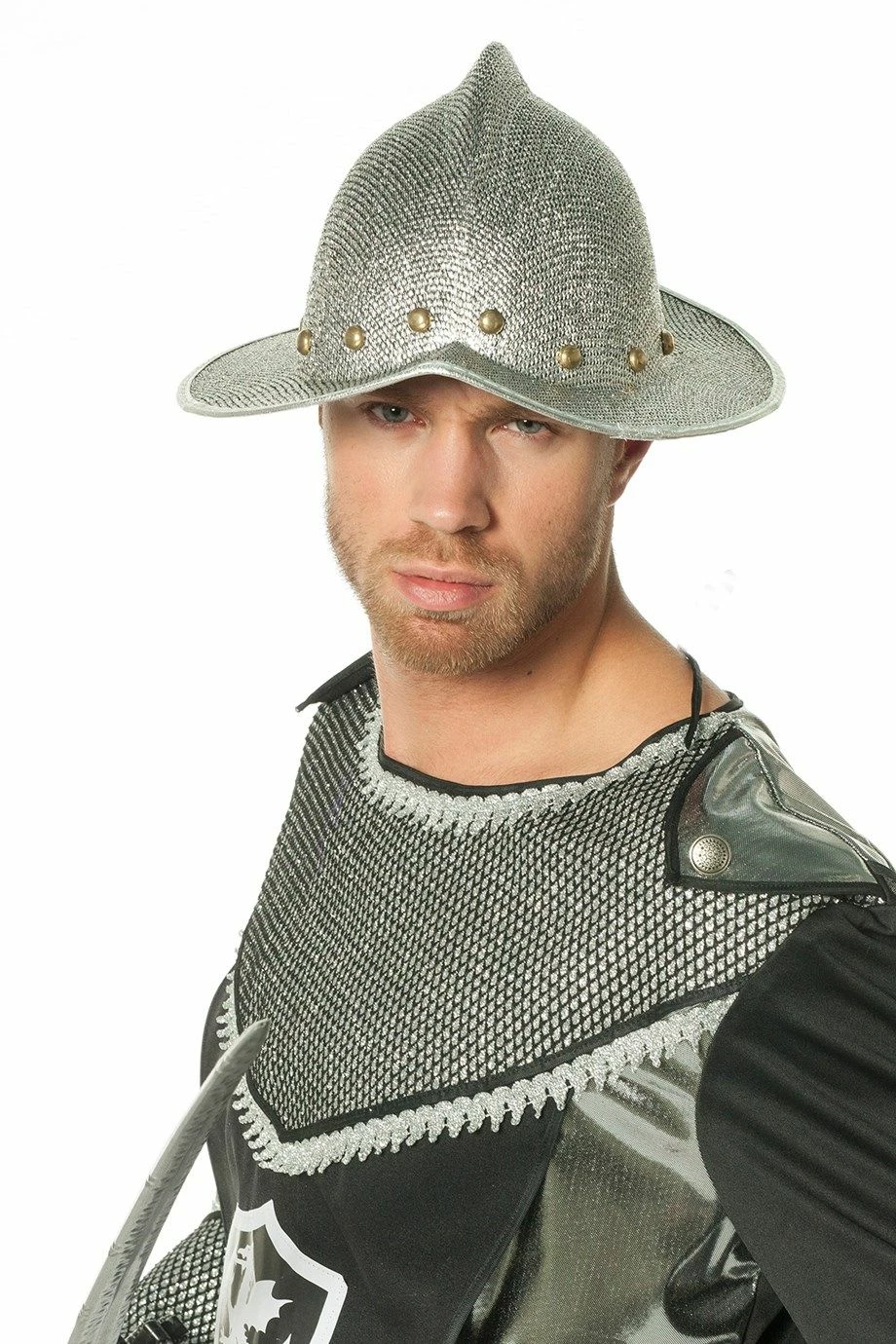 Deze zilvergekleurde ridderhoed is een mooie toevoeging aan je outfit. De hoed is afgewerkt met gouden studs.