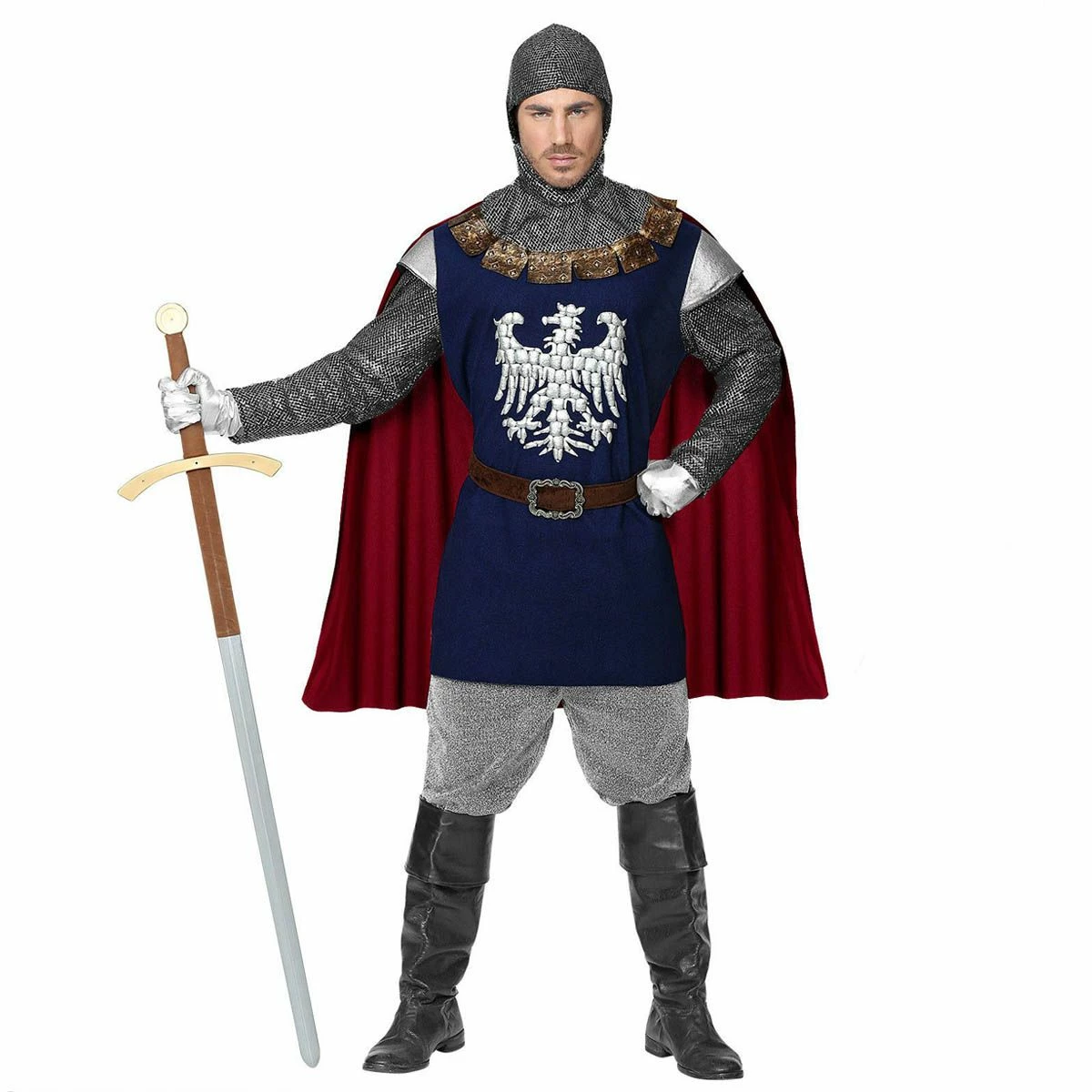 Mooi ridderpak voor heren. Dit kostuum bestaat uit een; jas, cape, riem en kap.