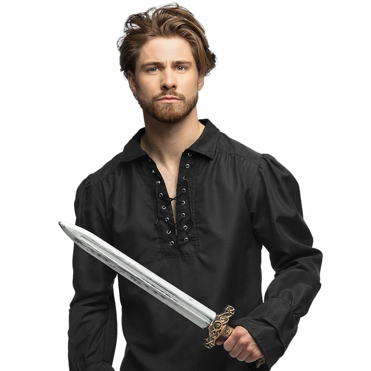 Ga ten strijde als een stoere ridder met dit mooie ridderzwaard. Het zwaard is 59 cm. De details op het handvat maken het zwaard het perfecte accessoire bij een ridder kostuum.