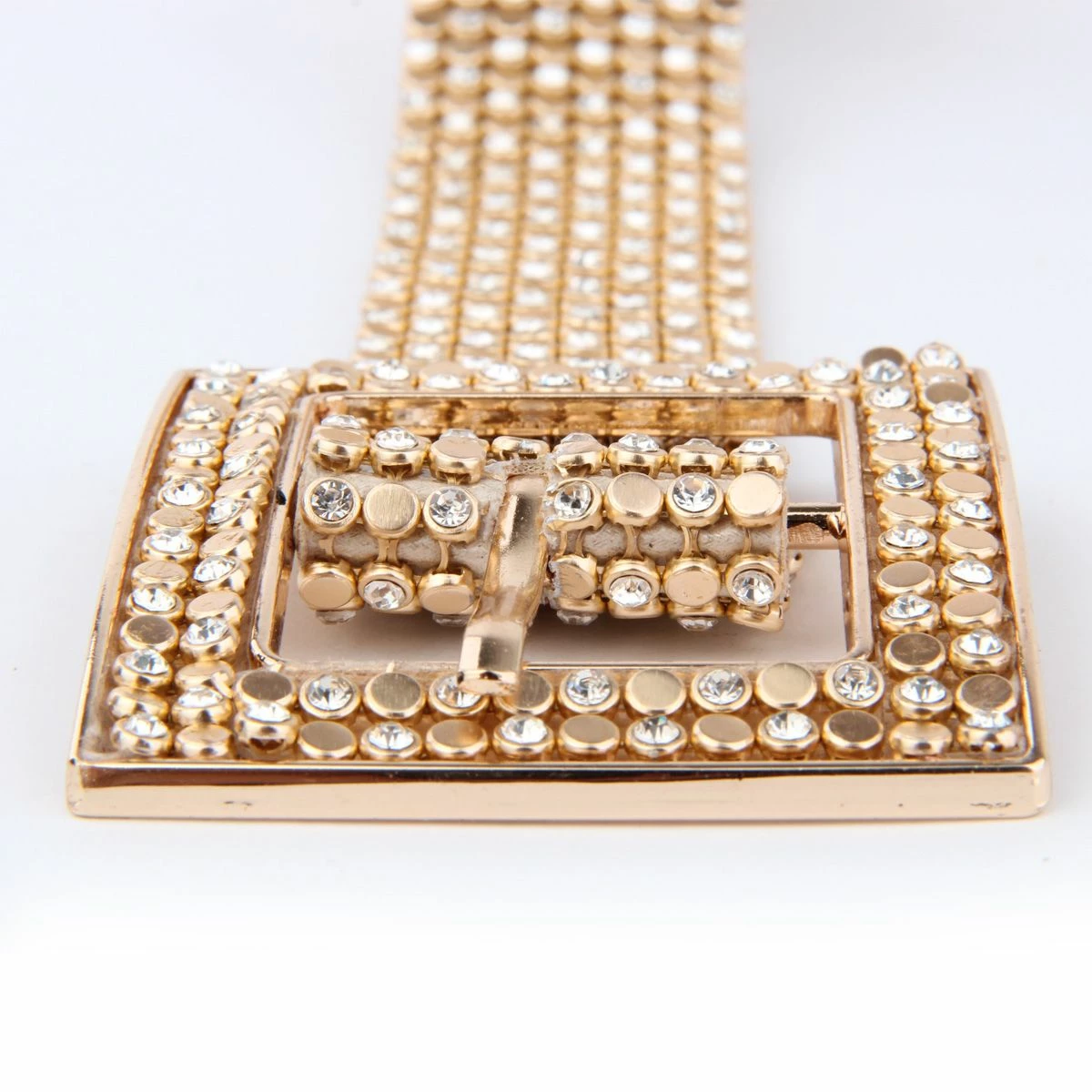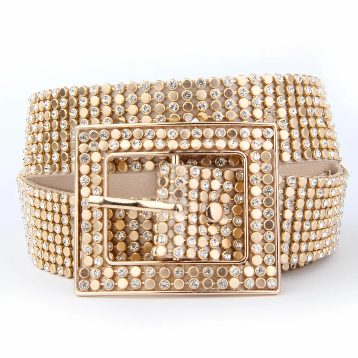 Als dat geen bling-bling is! Deze gouden riem bezet met strass steentjes schittert je tegemoet. Perfect bij je Foute Party of Disco outfit.