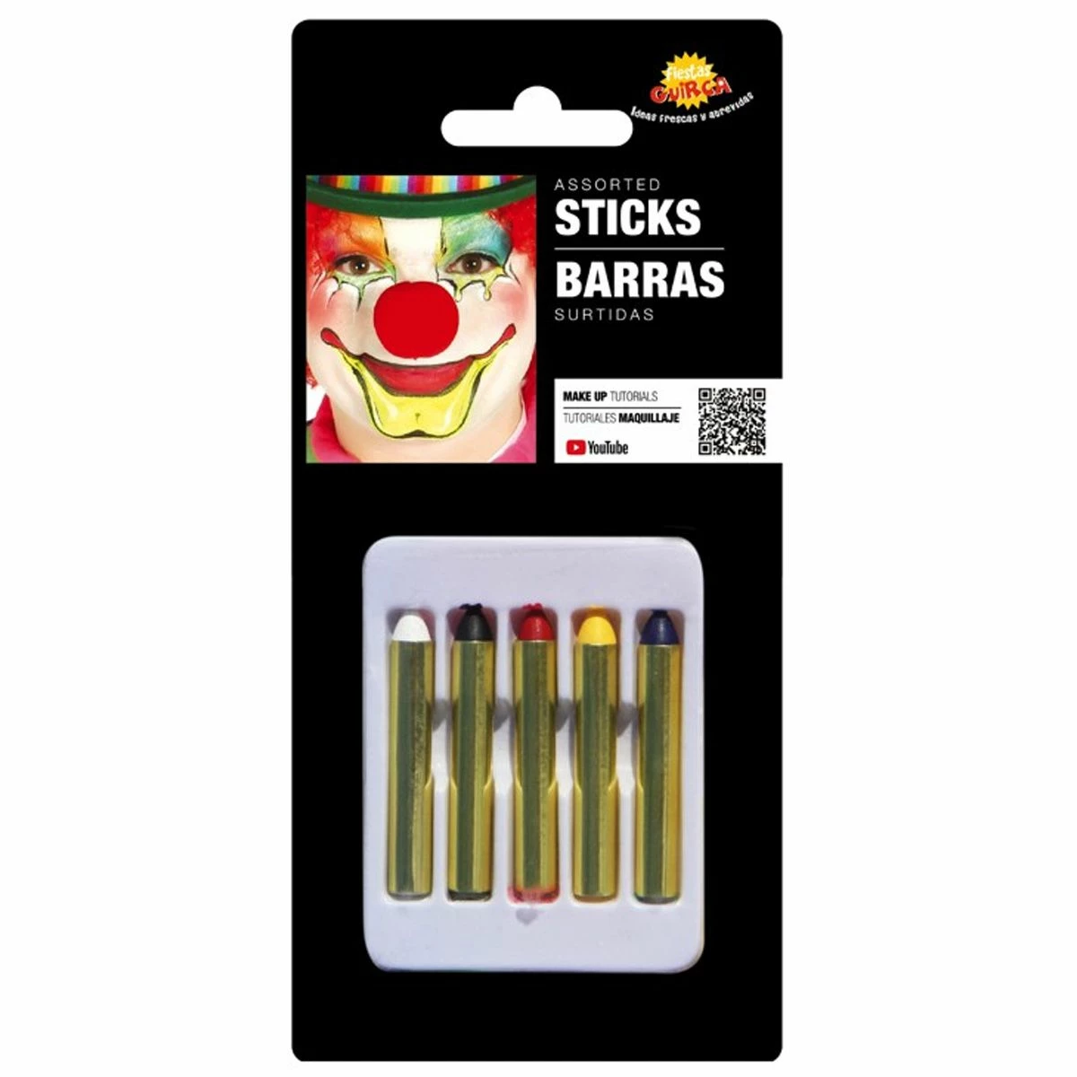 Schmink krijtjes in de kleuren: Zwart, wit, geel, rood en blauw. Met deze krijtjes set kun je de leukste creaties maken.