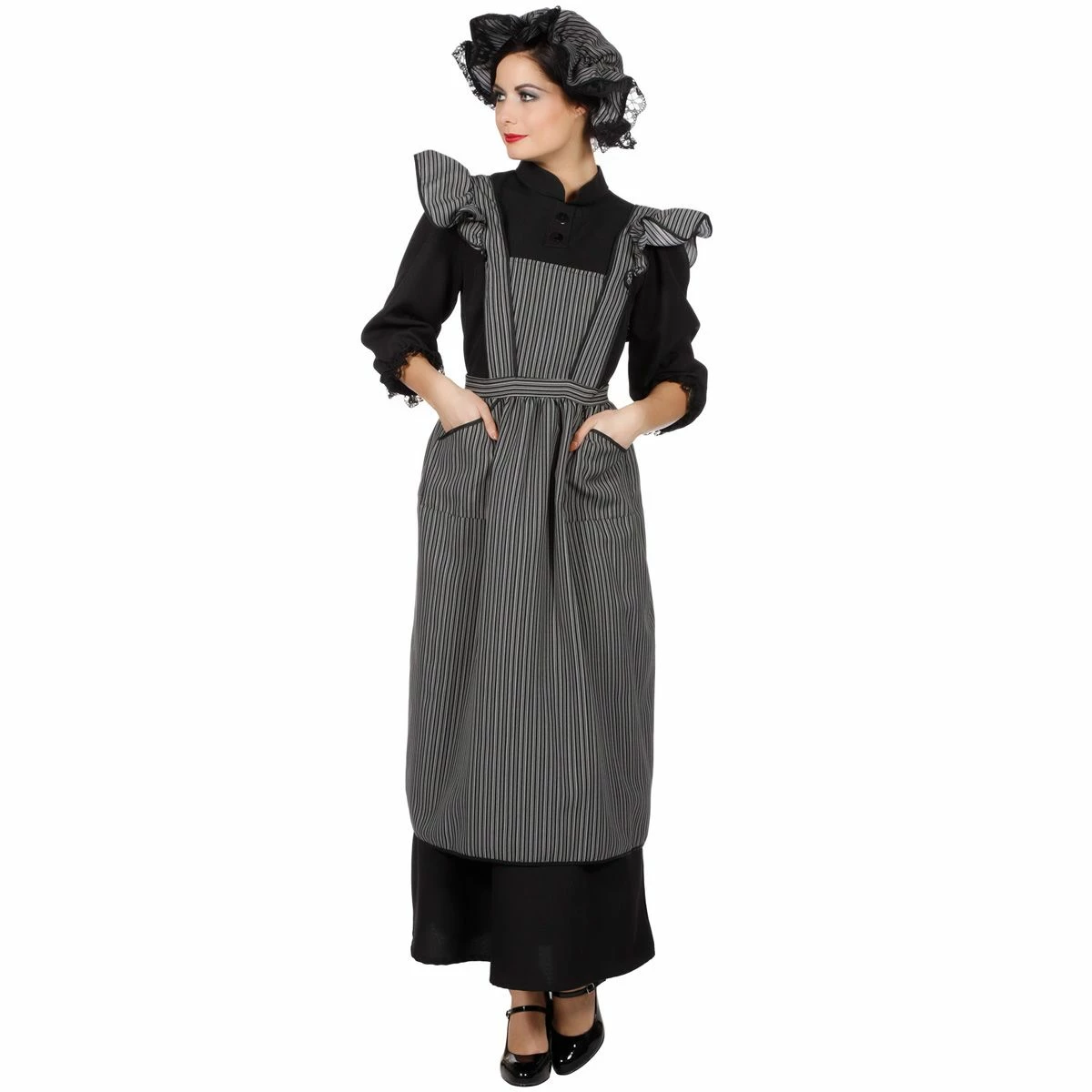 Schort en muts in grijs/zwart. Geschikt voor dienstmeid / biedermeier en boerenbruiloft.