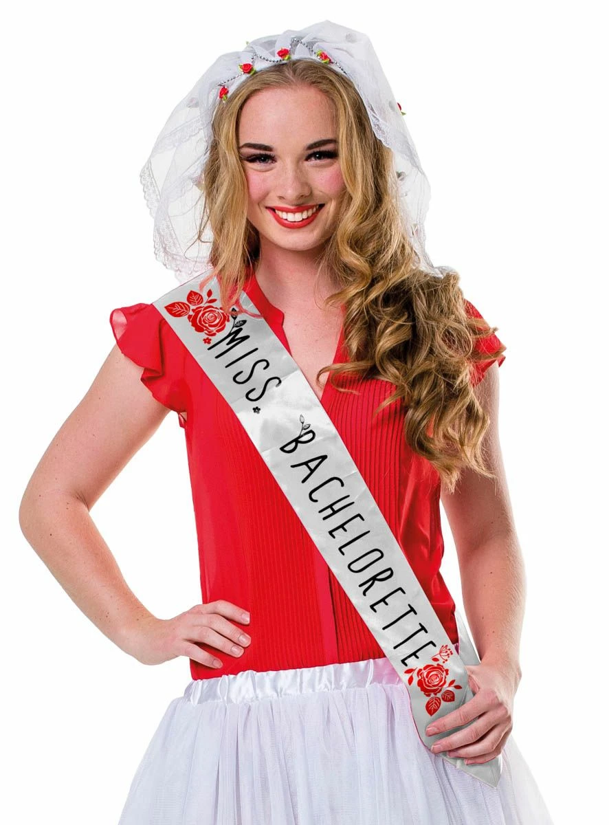 witte sjerp met de tekst MISS. BACHELORETTE. leuk voor een vrijgezellenfeest