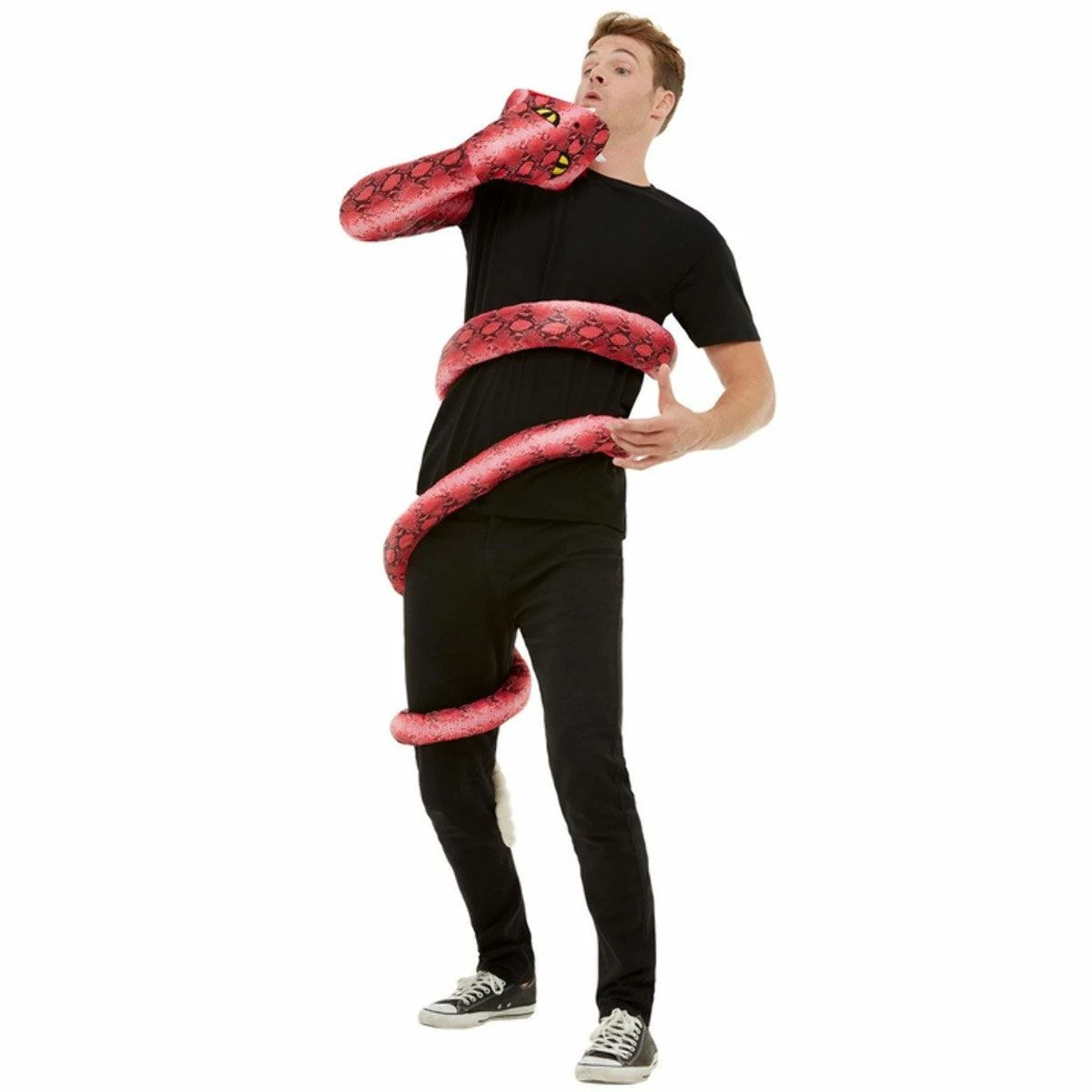 Dit slangenkostuum kun je om je lichaam bevestigen met het slangenhoofd als handpop.Â