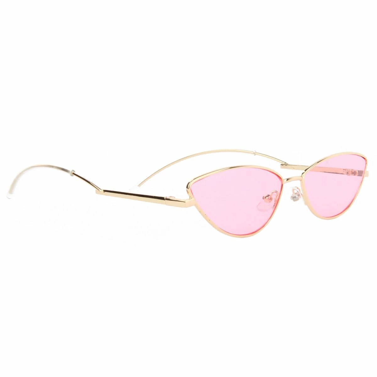 Smalle roze zonnebril in rock&roll stijl. Met deze bril maak je je outfit helemaal af.