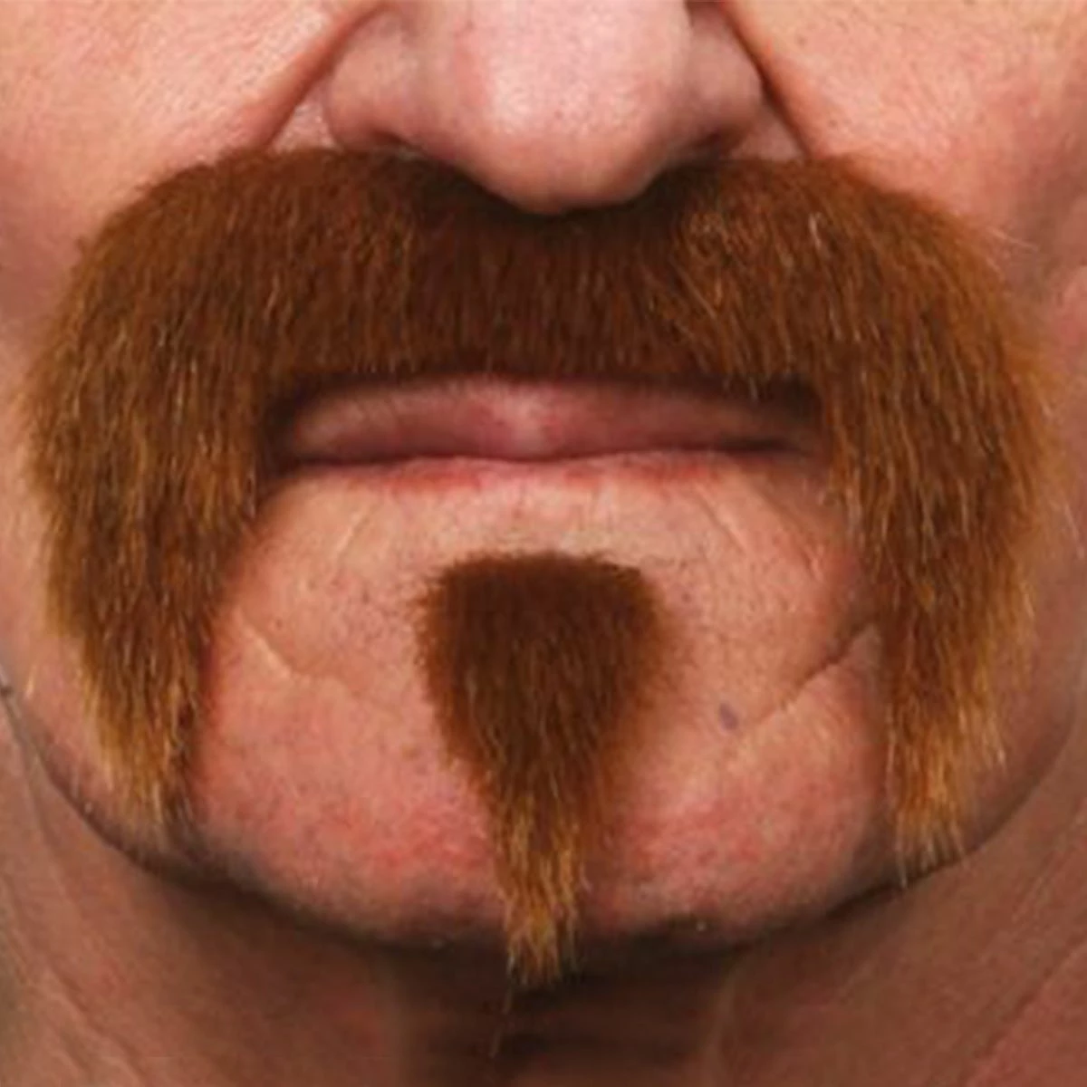 Een zelfklevende licht bruine snor en een sik. Perfect om elke outfit compleet te maken.