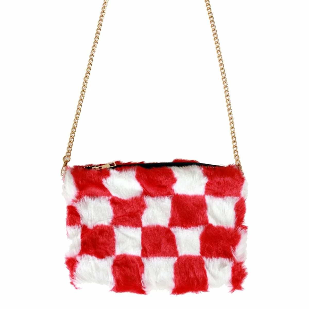 Leuk Brabant tasje van bont, rood-wit geblokt.