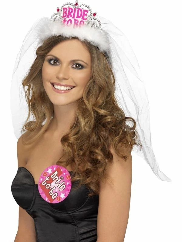 Bride to be tiara met sluier, leuk voor vrijgezellenfeestjes!