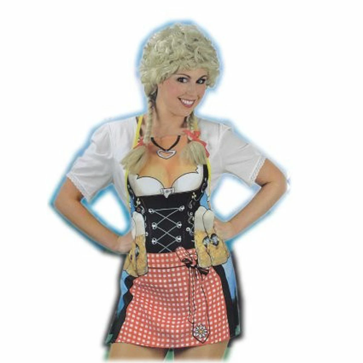 Grappig schort waarbij het lijkt of je een dirndl draagt.
