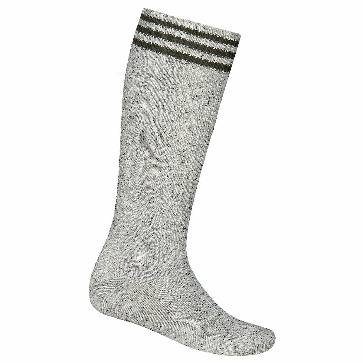 Grijs gemêleerde, lange tirolersokken met groene strepen. Deze sokken staan super stoer onder een Lederhosen, zo ben jij helemaal klaar voor het Oktoberfeest!