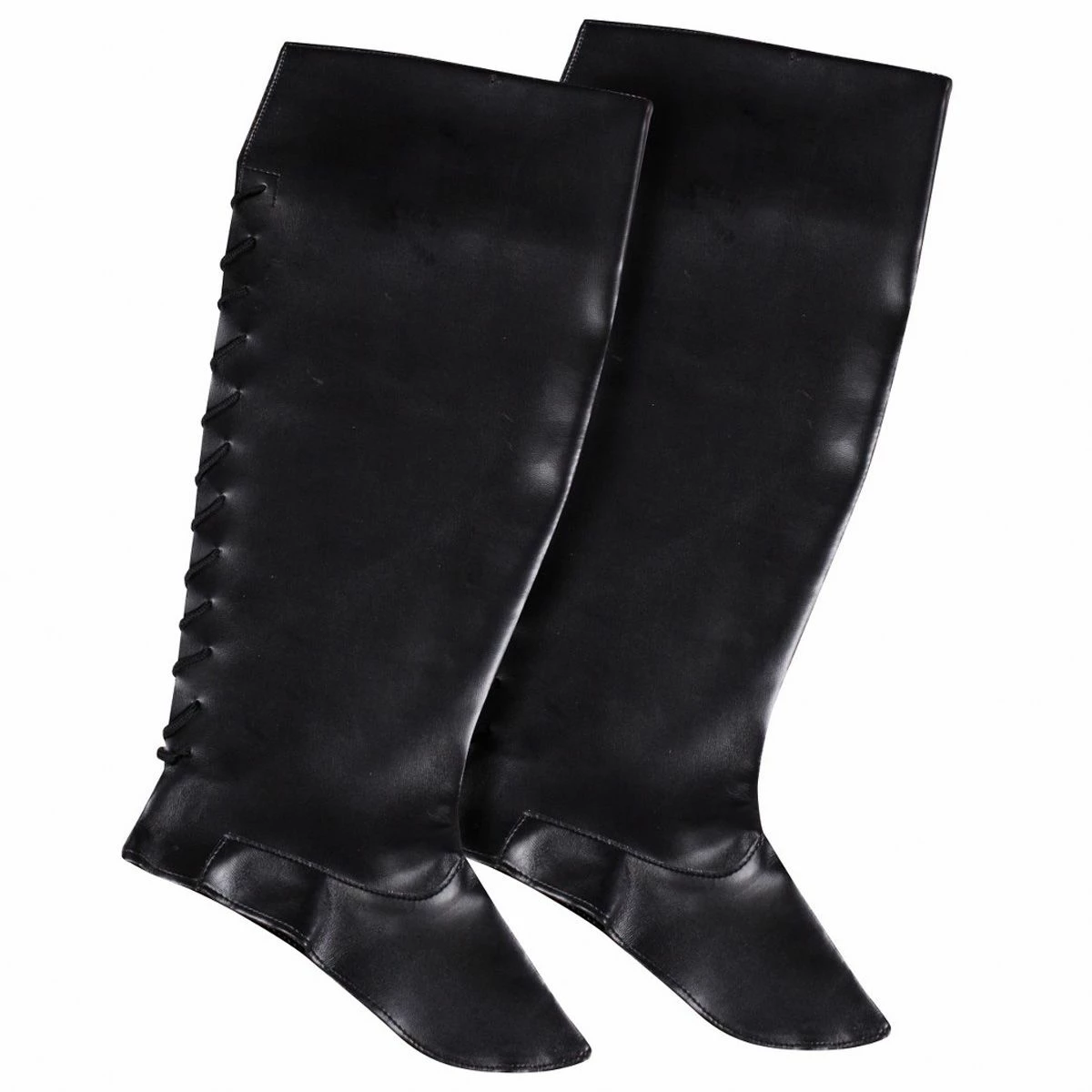 Zwarte beenkappen met rijgveter. Geschikt voor verschillende outfits zoals bijvoorbeeld piraat, markies enz.